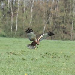 Als Gelegeschutzmaßnahme für Rohrweihen ist die Aussparung bei folgenden Bearbeitungsschritten in einem Bereich von 25 x 25m notwendig. Die Mitarbeitenden der Biologischen Station Steinfurt unterstützen bei Rohrweihen-Gelegen und übernehmen Beratung und notwendige Einzäunungen zum Schutz vor Prädation.