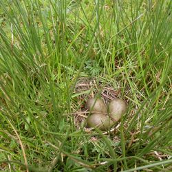 Ausnahme: Nach Rücksprache mit uNB/Biostation kann ein Vollgelege (ab 4 Eiern) im Ausnahmefall max. 2 m in die benachbarte, bereits bearbeitete Spur versetzt werden, damit sie weiterbrüten - nicht weiter weg! Dafür ist es nötig, dem Kiebitz das Nest in der bereits bearbeiteten Spur “nachzubauen”: Mit der Handfläche eine neue Nestmulde in die Erde drücken, mit kleinem Einstreumaterial etwas auspolstern und die Eier einzeln und sehr vorsichtig wieder dort hineinzulegen. Bei Rückfragen bitte an UNB oder Biostation wenden.