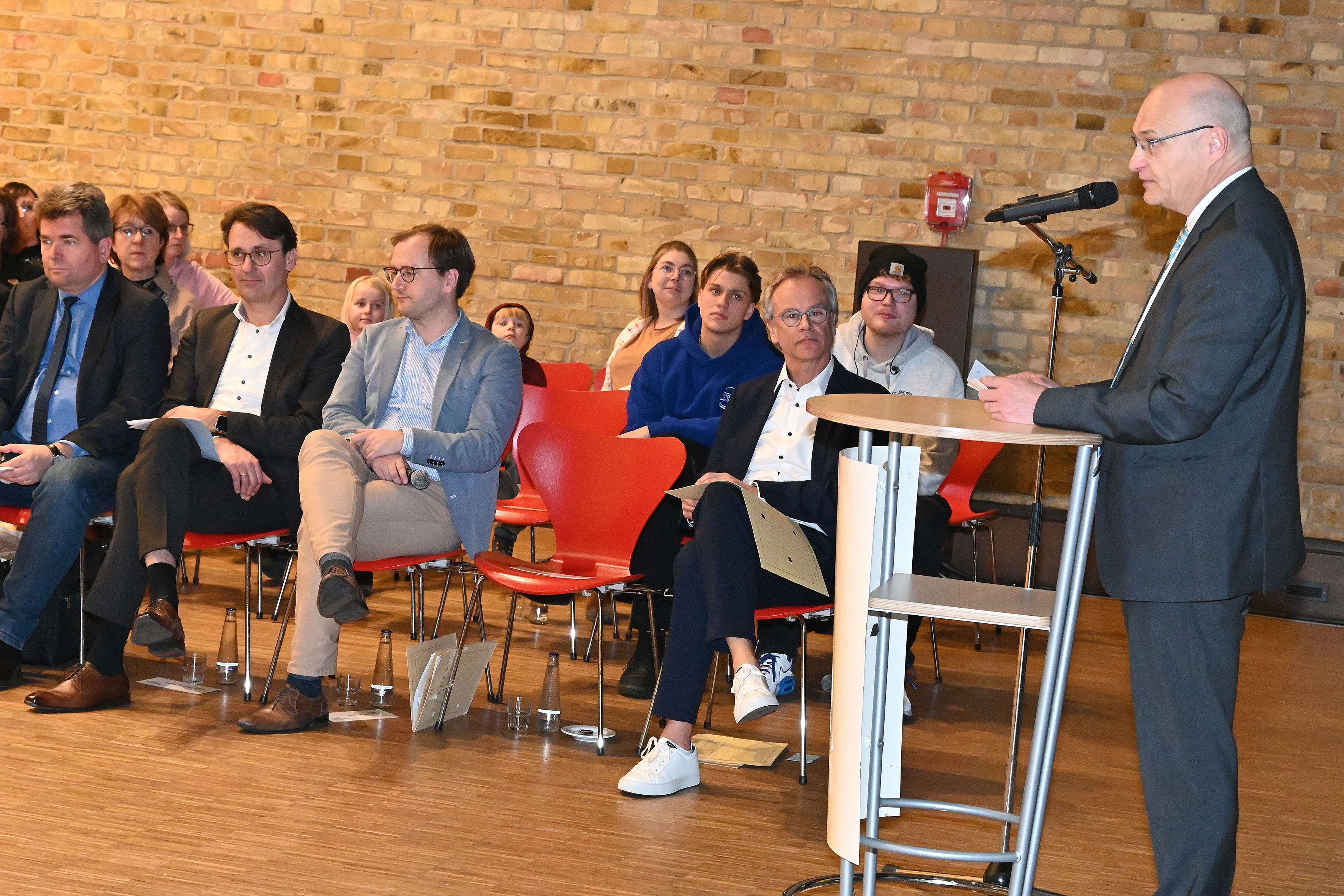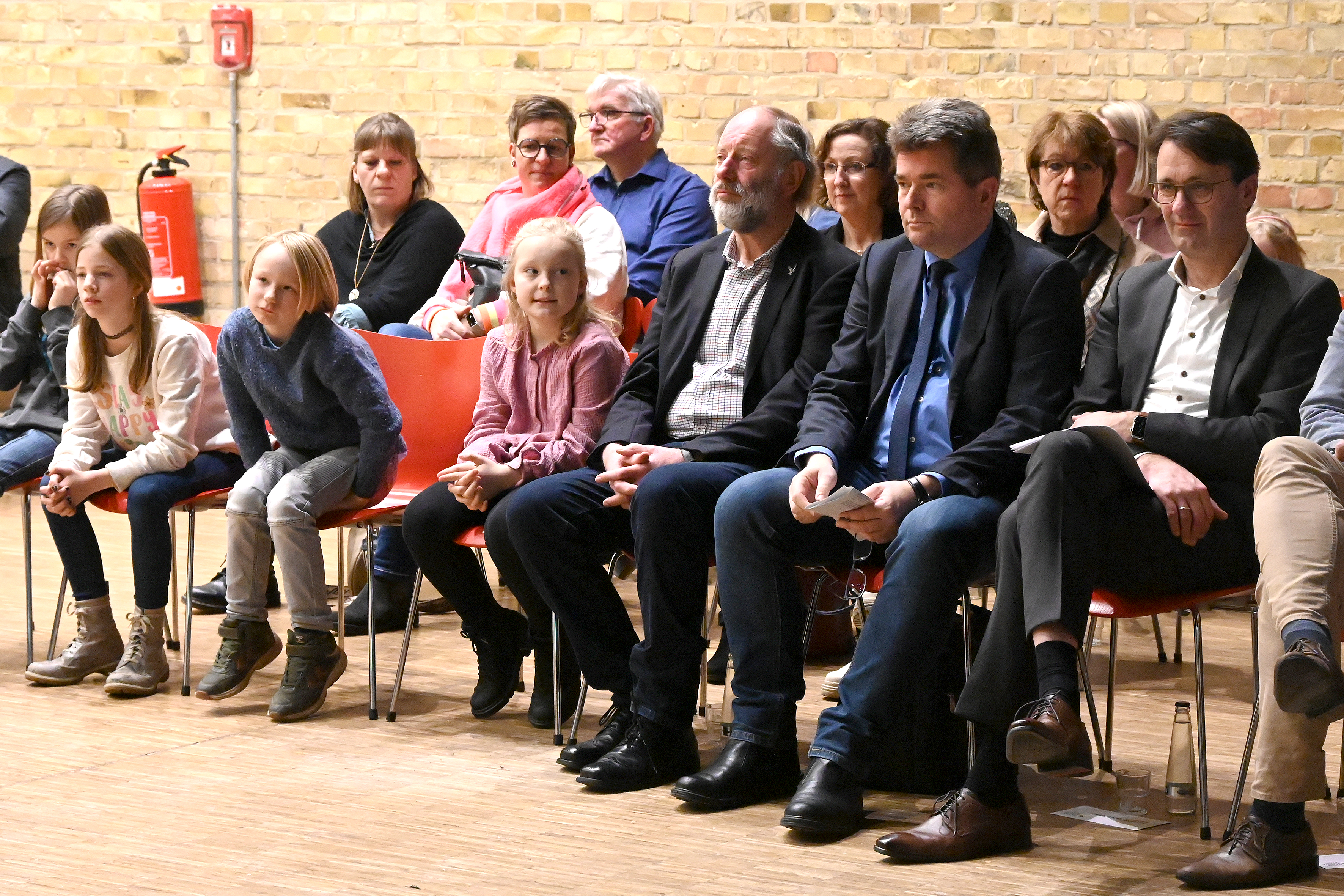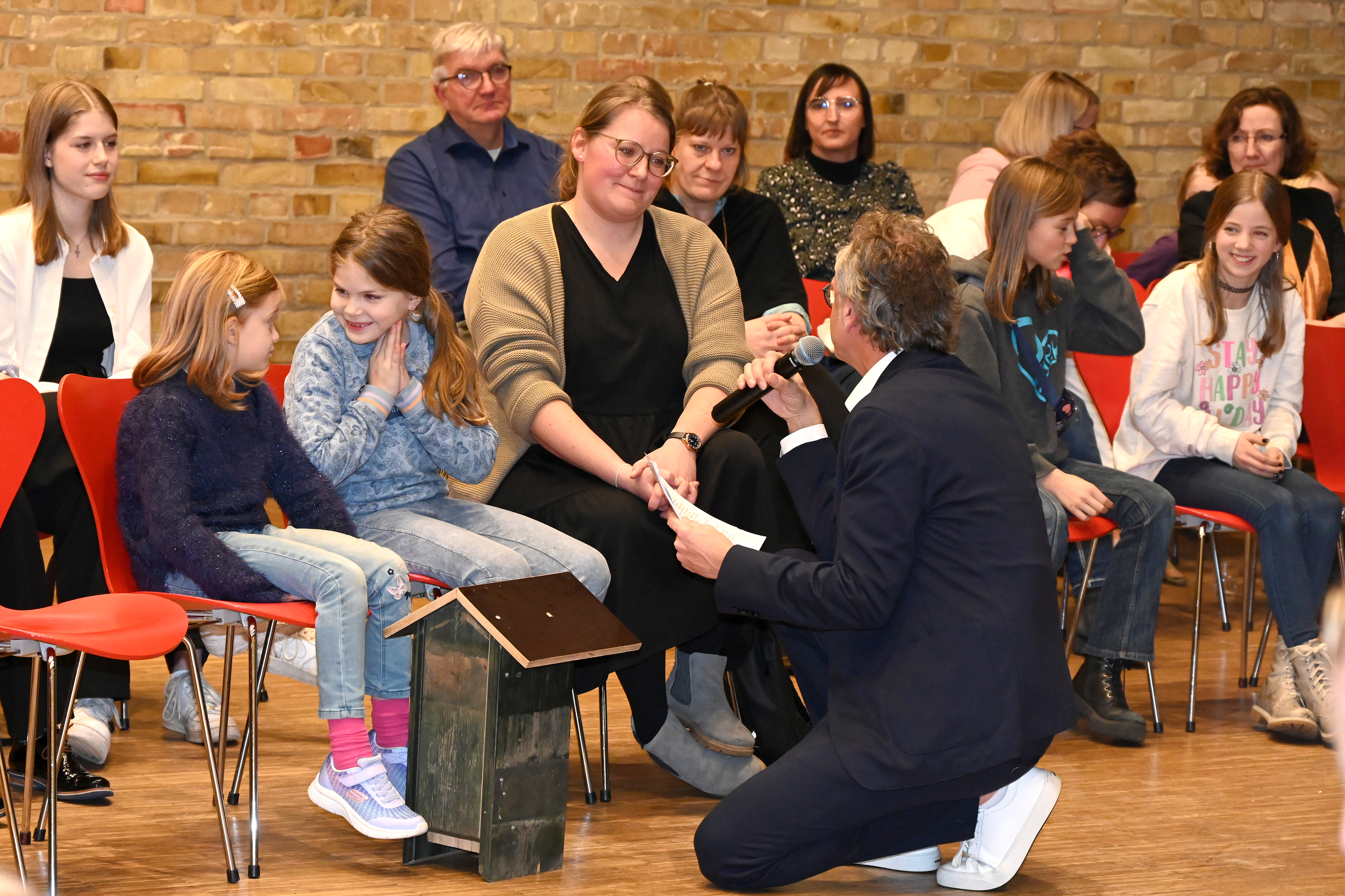 Landrat Dr. Martin Sommer betonte, dass alle Beiträge einen Gewinn für Natur und Umwelt im Kreis Steinfurt darstellen. Gemeinsam mit Rainer Langkamp vom Vorstand der Kreissparkasse Steinfurt sowie dem Vorsitzenden des Kuratoriums und des Beirates der Naturschutzstiftung Steinfurt, Carsten Rehers, nahm Dr. Sommer die Preisverleihung vor. Einblick in die sehr gute Stimmung während der von Udo Schneiders, Geschäftsführer der Naturschutzstiftung, moderierten Veranstaltung geben die folgenden Fotos und Videos der Verleihung und Interviews mit Teilnehmenden. Musikalisch wurde die Veranstaltung bereichert durch den Gewinner des Sparkassen Nachwuchspreises Kultur 2023, JBS (Jan Schemmer).