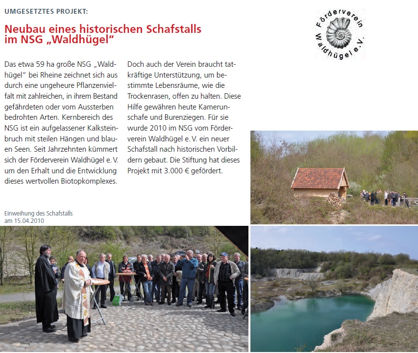 In den zurück liegenden Jahren wurden insgesamt 550.000 € in die Projektförderung bzw. in entsprechende Rücklagen eingestellt. Durch eine Ko-Finanzierung im Rahmen anderer Förderprogramme konnten weitere 200.000 € für Naturschutzprojekte gewonnen werden.