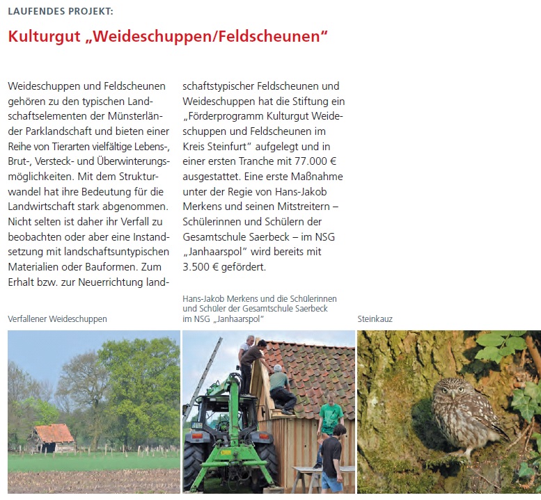 Der ehrenamtliche Naturschutz, die Jägerschaft, die Land- und Forstwirtschaft, die Heimatvereine, die Angelsportvereine u. a. führen alljährlich eine Vielzahl an Landschaftsentwicklungs- und Pflegemaßnahmen durch. Sie stellen damit eine wichtige Säule des Naturschutzes im Kreis Steinfurt dar.