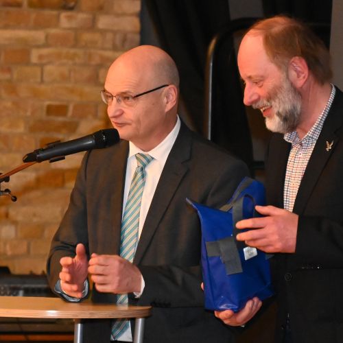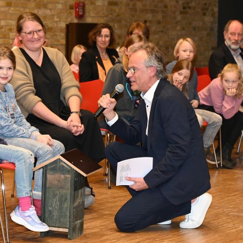 Landrat Dr. Martin Sommer betonte, dass alle Beiträge einen Gewinn für Natur und Umwelt im Kreis Steinfurt darstellen. Gemeinsam mit Rainer Langkamp vom Vorstand der Kreissparkasse Steinfurt sowie dem Vorsitzenden des Kuratoriums und des Beirates der Naturschutzstiftung Steinfurt, Carsten Rehers, nahm Dr. Sommer die Preisverleihung vor. Einblick in die sehr gute Stimmung während der von Udo Schneiders, Geschäftsführer der Naturschutzstiftung, moderierten Veranstaltung geben die folgenden Fotos und Videos der Verleihung und Interviews mit Teilnehmenden. Musikalisch wurde die Veranstaltung bereichert durch den Gewinner des Sparkassen Nachwuchspreises Kultur 2023, JBS (Jan Schemmer).