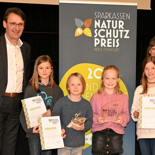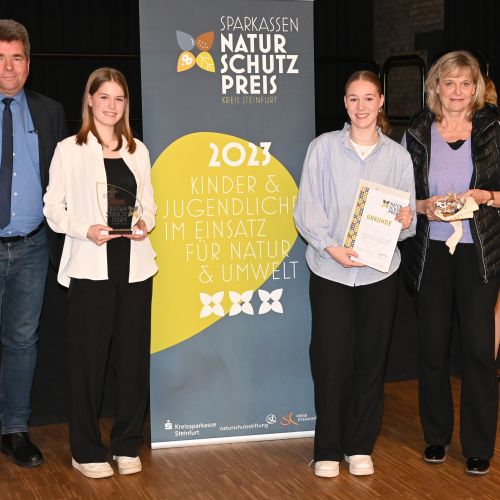 Die Kreissparkasse Steinfurt und die Naturschutzstiftung Kreis Steinfurt haben im Jahr 2023 erstmalig den Naturschutzpreis ausgelobt und am 05. Februar 2024 im Kulturzentrum GBS im Ballenlager Greven verliehen.