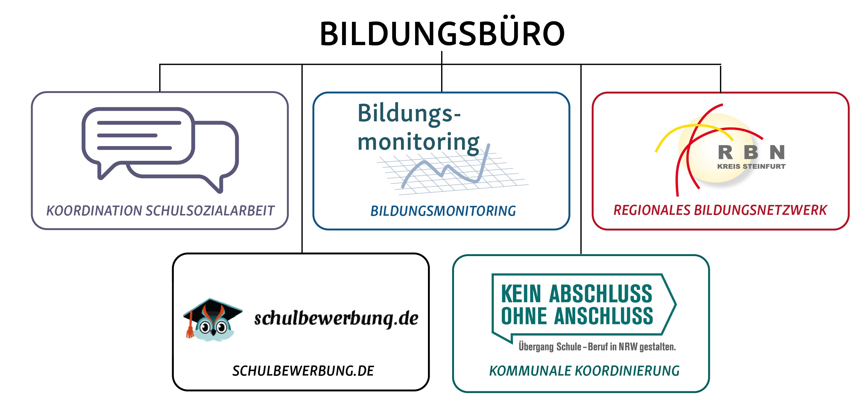 Das Bildungsbüro gliedert sich in vier Aufgabenbereiche: