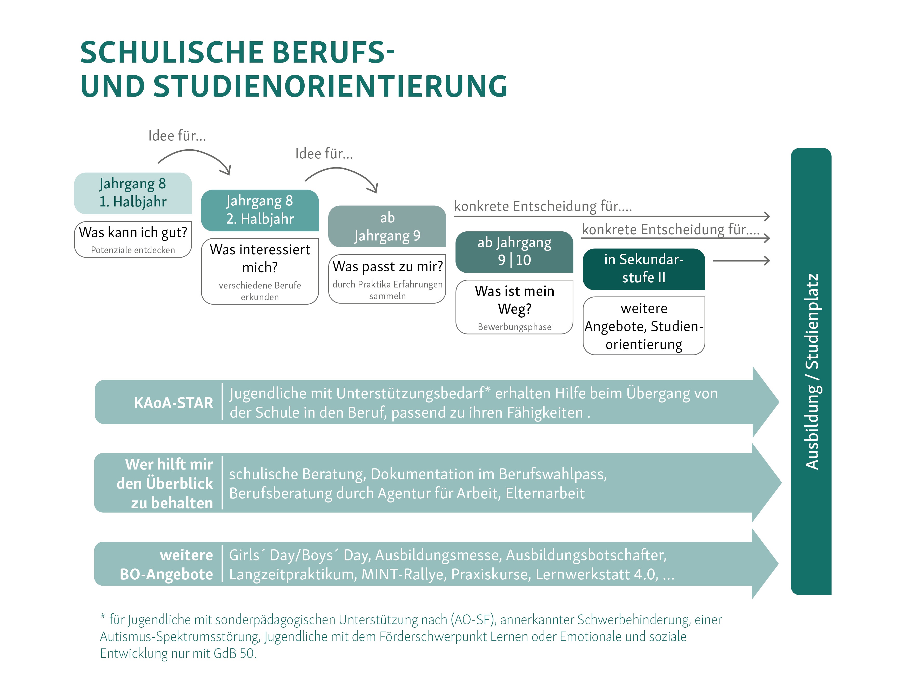 Die Landesinitiative Kein Abschluss ohne Anschluss, kurz KAoA, befasst sich mit der Gestaltung des Übergangs von der Schule in den Beruf. Sie richtet sich an alle Schülerinnen und Schüler der weiterführenden Schulen in Nordrhein-Westfalen.