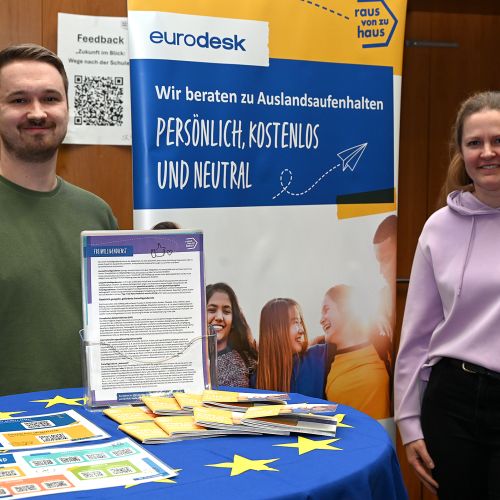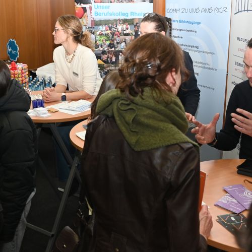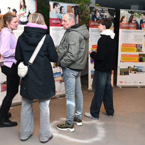 Im Anschluss an das Bühnenprogramm standen zahlreiche Infostände von Partnern zur Verfügung, die über den Übergang zwischen Schule und Beruf informieren. Jugendliche und Eltern hatten die Möglichkeit, individuelle Fragen zu klären und erste Kontakte zu knüpfen – unter anderem mit der Agentur für Arbeit, der FH Münster, der Universität Münster, der Kreishandwerkerschaft Steinfurt Warendorf, der Handwerkskammer Münster, der IHK Nord Westfalen, regionalen Berufskollegs sowie weiteren Bildungs- und Ausbildungspartnern.