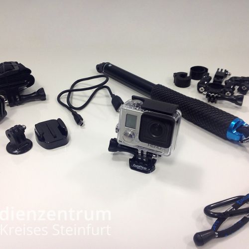 Es sind bei uns im Medienzentrum verschiede Halterungen für die Kamera erhältlich