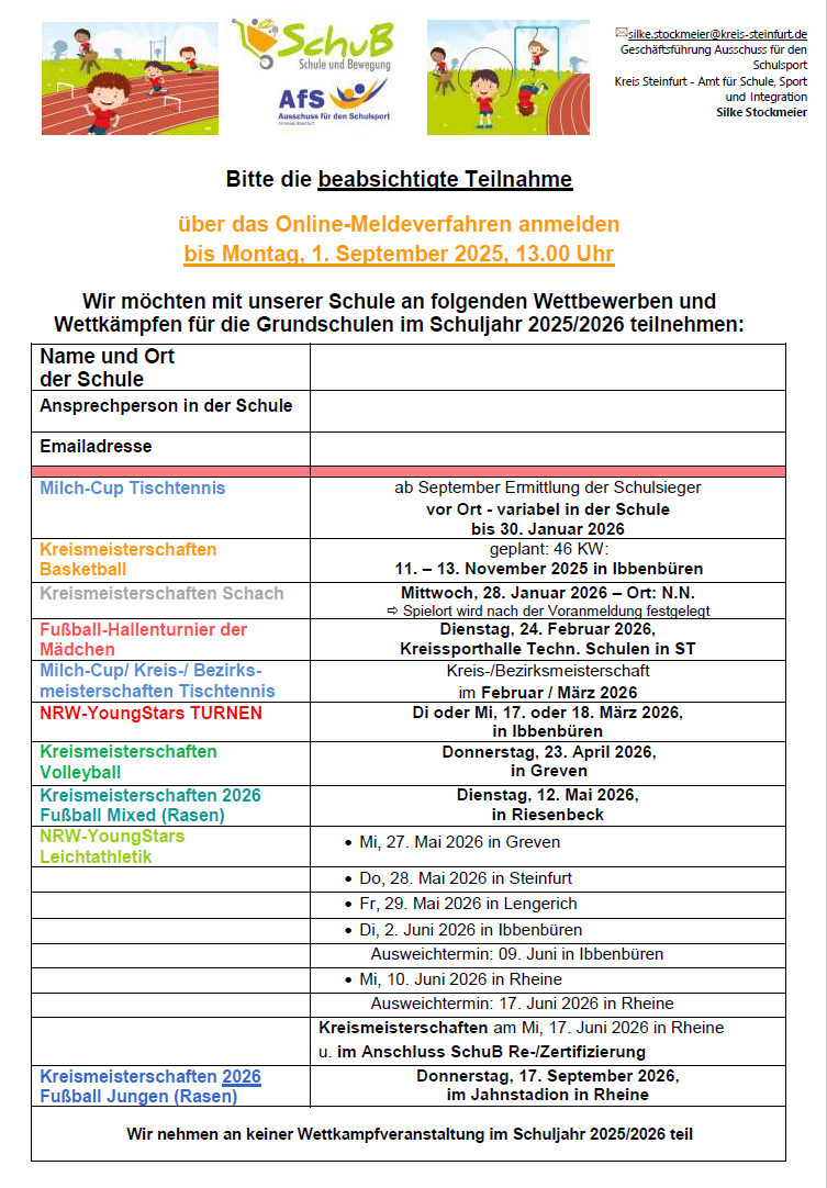 - Teilnahme an Sportwettkämpfen / Turnieren / Sportabzeichen