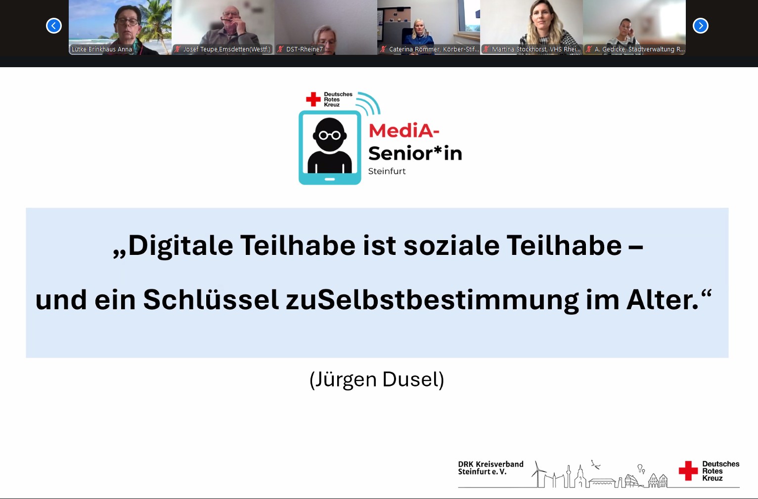 Ein besonderer Akzent wurde zum Abschluss mit der Vorstellung des Konzepts einer kreisweiten Aktionswoche gesetzt. Sie könnte dazu beitragen, Angebote zur Stärkung der digitalen Teilhabe älterer Menschen noch sichtbarer zu machen und bei dem Thema noch “mehr PS auf die Straße“ zu bringen.
