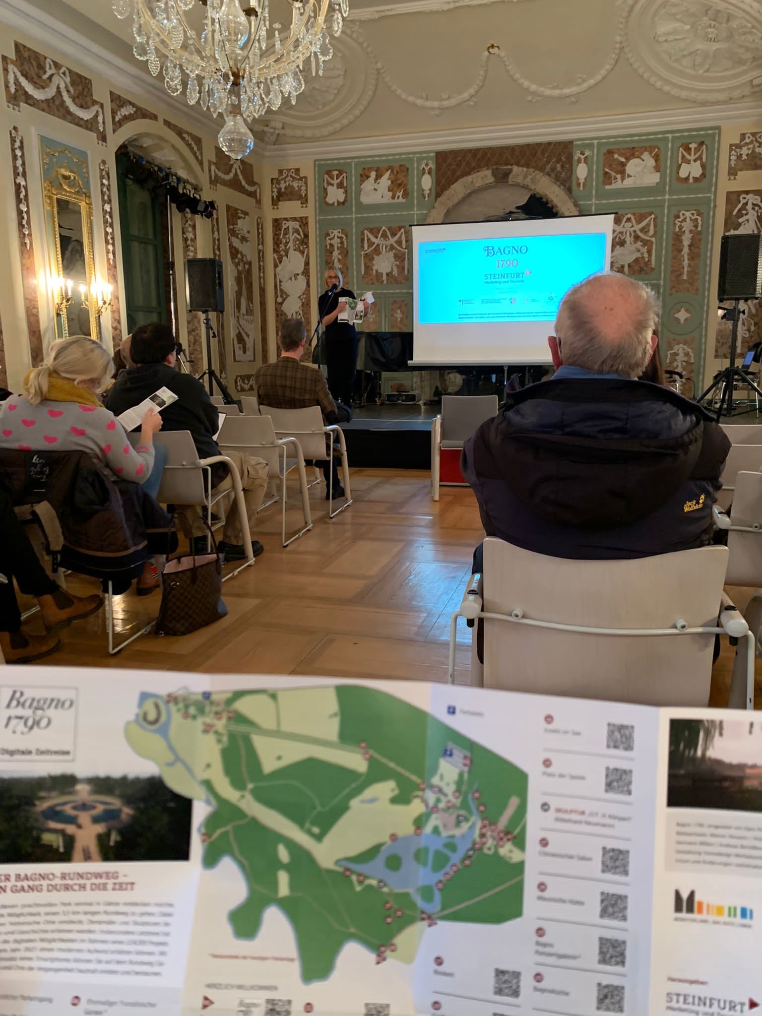Das Garten- und Kulturdenkmal Bagno mit 250-jähriger Geschichte wurde als Regionale-Projekt aufgewertet. Die Umgestaltung fand seinerzeit ausschließlich analog und damit im Park statt, so erläutern z. B. Hinweistafeln die Historie und Besonderheiten. Ergänzend soll nun eine digitale Darstellung in Form von 3-D Modellen, der ca. 30 Parkelemente umgesetzt werden, um den Park anschaulich, modern und unterhaltsam weiterzuentwickeln und bekannter zu machen. Geplant ist jährliche „Gaming-Elemente“ für Familien mit Kindern zum Ende der Sommerferien anzubieten, um auch diese Zielgruppe für einen Besuch zu animieren. Vor Ort wird eine Smartphone Anwendung die Stationen erläutern.