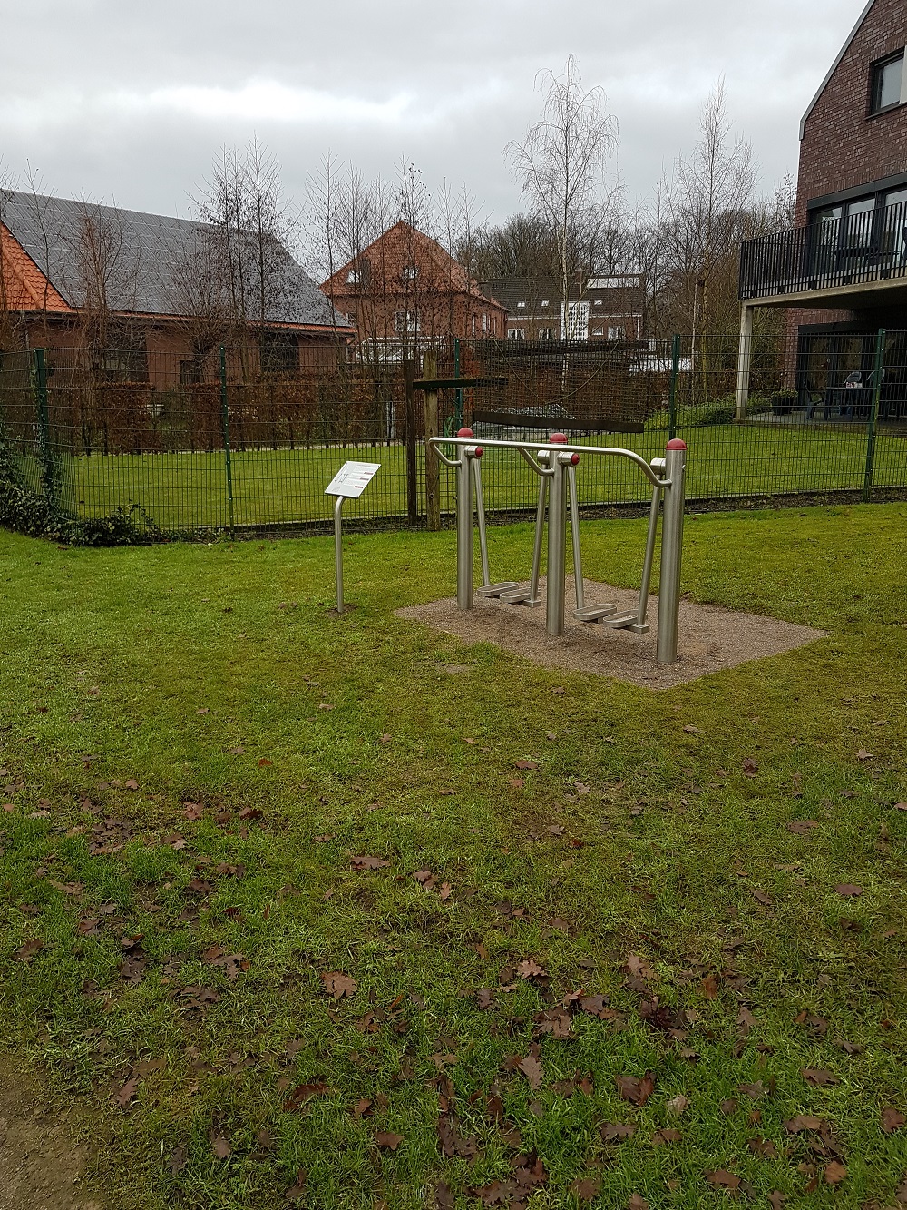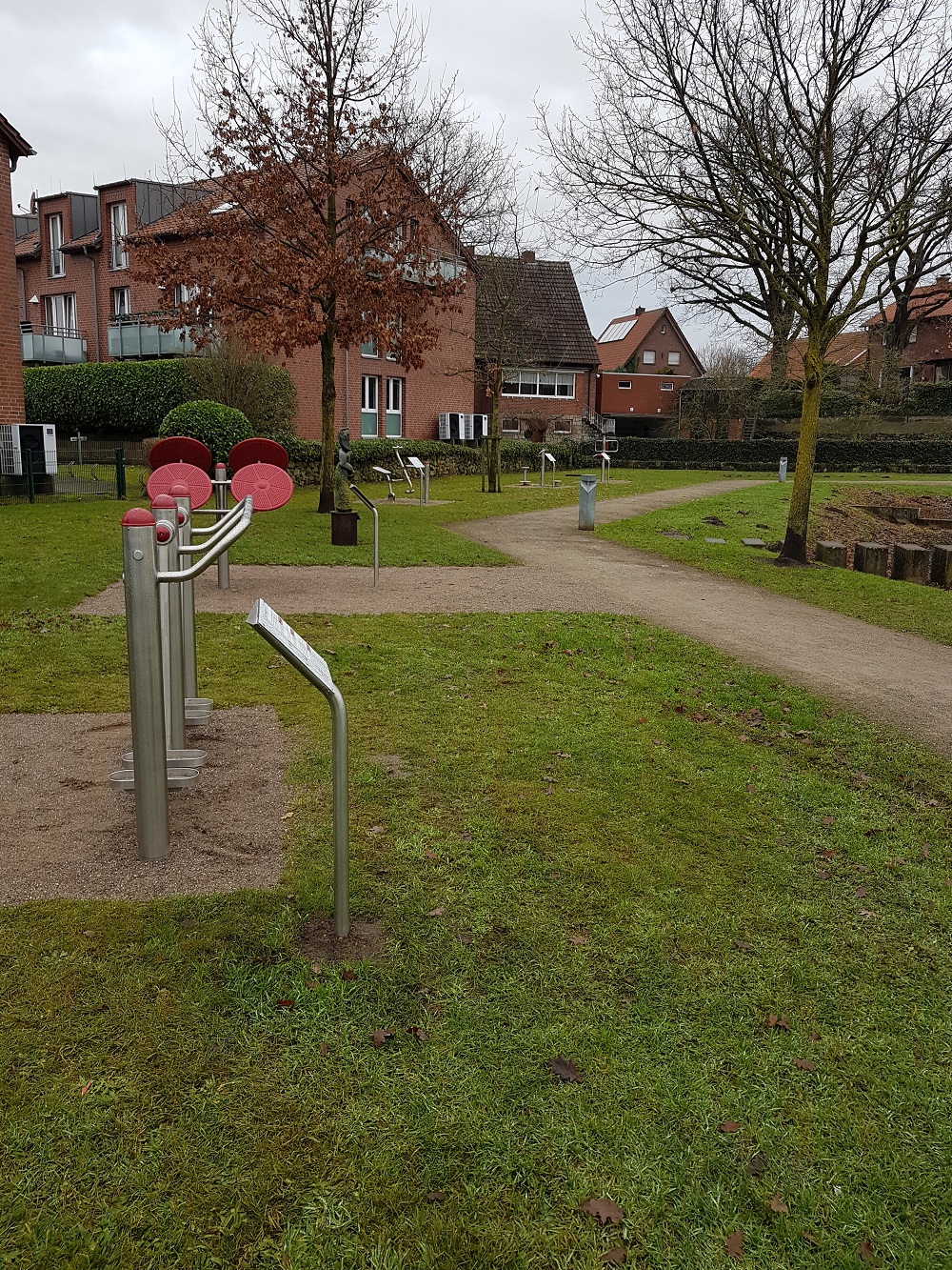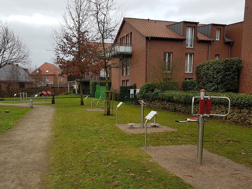 Die Gemeinde Saerbeck errichtet in Kooperation mit der Kolpingsfamilie einen Bewegungsparcours für Erwachsene. Die Aufenthaltsfunktion des Parks soll durch die Anlegung des Parcours, der aus insgesamt 5 Outdoor-Fitnessgeräten besteht, erweitert und ergänzt werden. So wird ein Trainieren im Freien ermöglicht. Zu jedem Fitnessgerät wir eine entsprechende Hinweistafel aufgestellt, die die Nutzung des jeweiligen Gerätes erläutert. Die Auswahl der Geräte wurde dabei so getroffen, dass gerade die Körperpartien, die der großen Masse der Bevölkerung Probleme bereiten (wie z.B. Schulter, Rücken, Hüfte), besonders berücksichtigt werden.