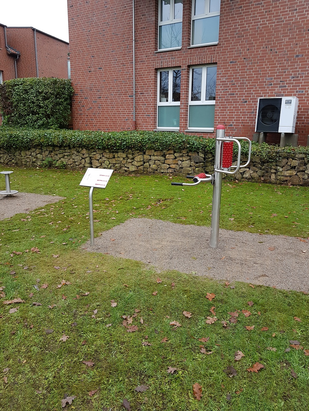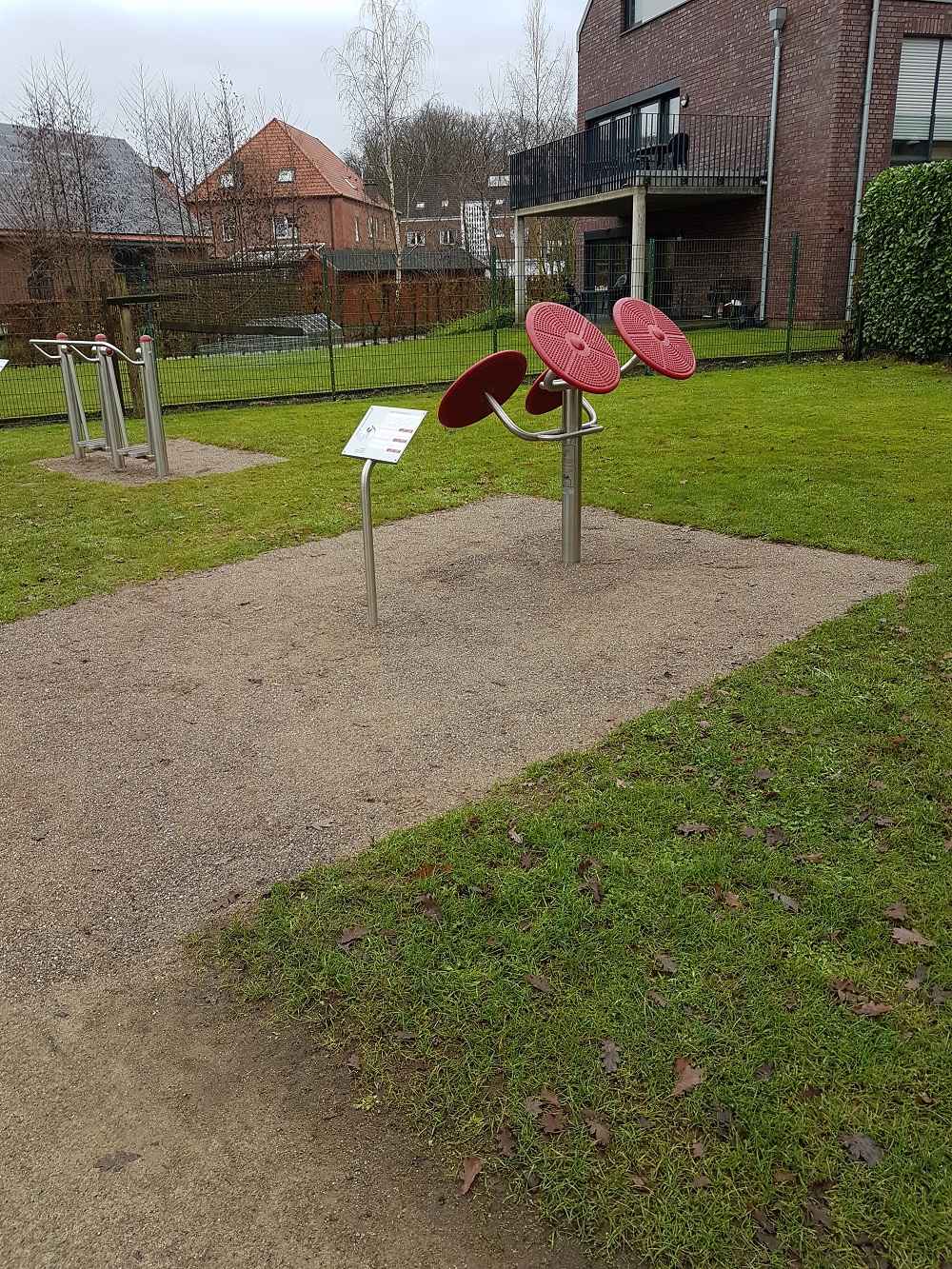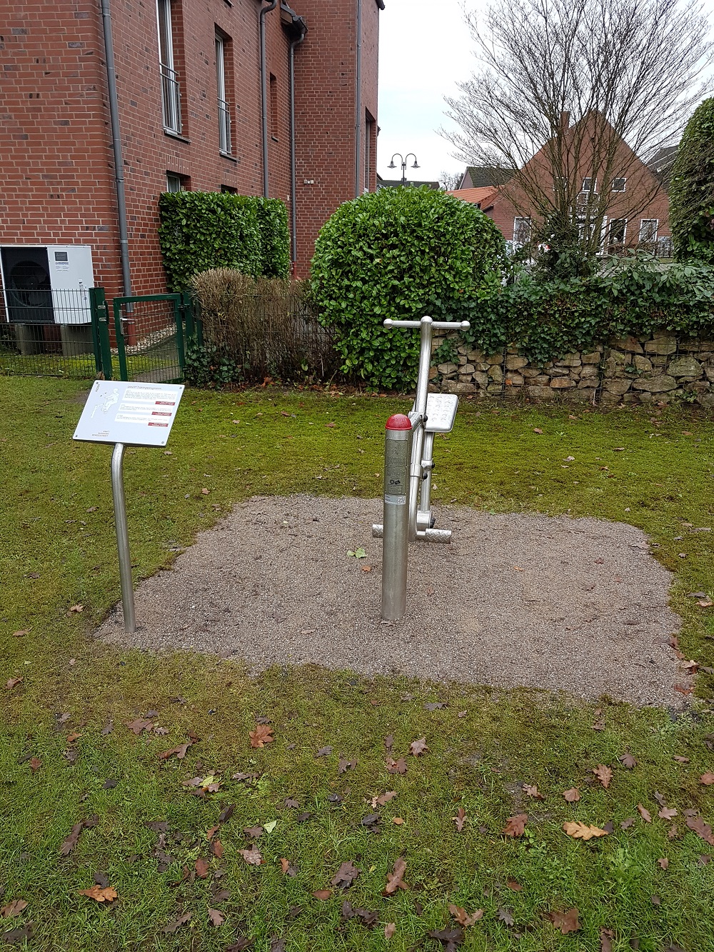 Die Gemeinde Saerbeck errichtet in Kooperation mit der Kolpingsfamilie einen Bewegungsparcours für Erwachsene. Die Aufenthaltsfunktion des Parks soll durch die Anlegung des Parcours, der aus insgesamt 5 Outdoor-Fitnessgeräten besteht, erweitert und ergänzt werden. So wird ein Trainieren im Freien ermöglicht. Zu jedem Fitnessgerät wir eine entsprechende Hinweistafel aufgestellt, die die Nutzung des jeweiligen Gerätes erläutert. Die Auswahl der Geräte wurde dabei so getroffen, dass gerade die Körperpartien, die der großen Masse der Bevölkerung Probleme bereiten (wie z.B. Schulter, Rücken, Hüfte), besonders berücksichtigt werden.