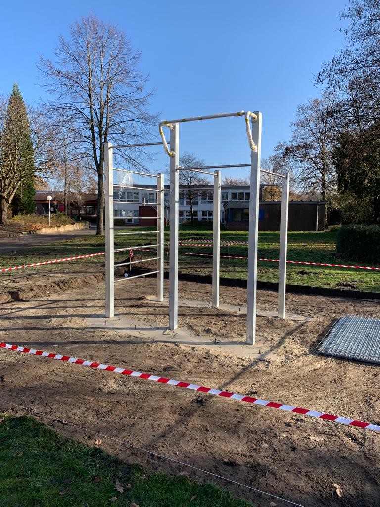 In den Pausen ist der Bewegungsdrang der SuS unübersehbar. Diesem soll durch den Bau einer Calisthenics-Anlage Rechnung getragen werden. Die Anlage soll einen Outdoor-Trainingspark, ein Trampolin sowie drei Sitzbänke umfassen.