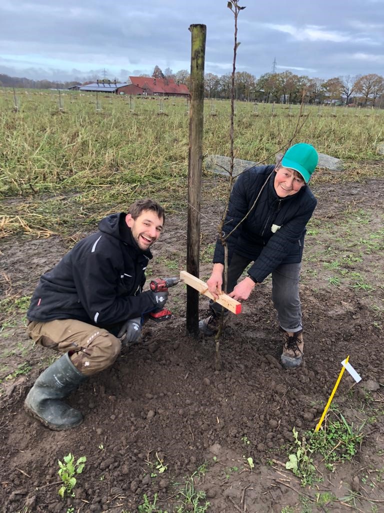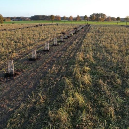 - Pflanzung von ca. 500 Apfelbäumen (8 alte robuste Apfelsorten wie Discovery, Holsteiner Cox, Alkmene, Biesterfelder Renette, Jakob Fischer, Westfälischer Frühapfel) im Agroforstsystem mit 3 m breiten Apfelstreifen zwischen 30 m breiten Ackerstreifen