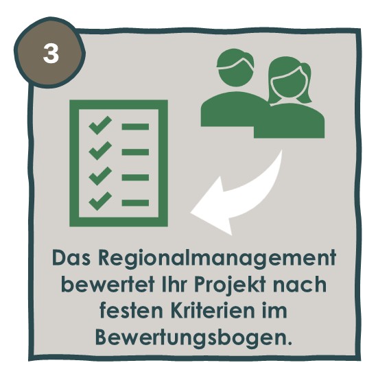 Sie bekommen eine Checkliste vom Regionalmanagement ausgehändigt, die dabei hilft, alle Unterlagen für den Projektantrag zusammenzutragen.